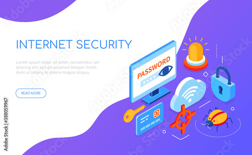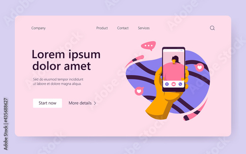 Šablona webových stránek služby předplatného hudby. Vektorový izometrický smartphone se sluchátky, houslovým klíčem a poznámkami, tlačítko předplatného.