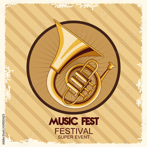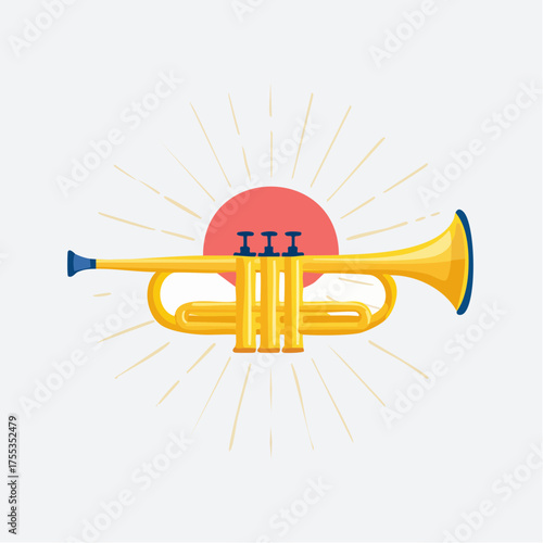 Hudba vektor pozoun. Vítr nástroj ikona kreslený ilustrace. Jazz brass orchestra zlatá trubka tuba izolovaných na bílém pozadí