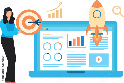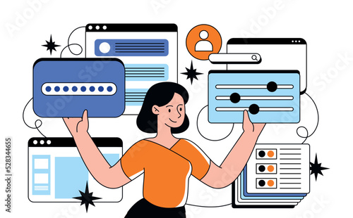 Muslimka v hidžábu pracuje s obrazovkami virtuální reality. Inženýrka a analytička dat. Rozmanitost a prolomit vektorovou ilustraci konceptu zkreslení vědy. Ženy v technice. Inovativní technologie.