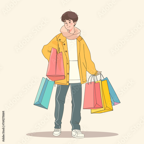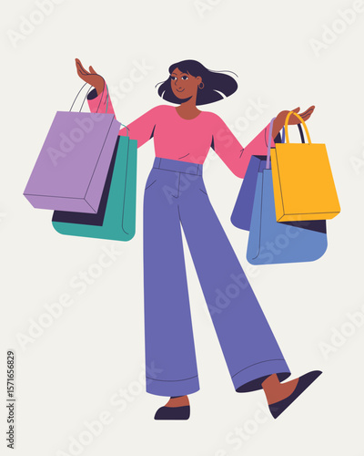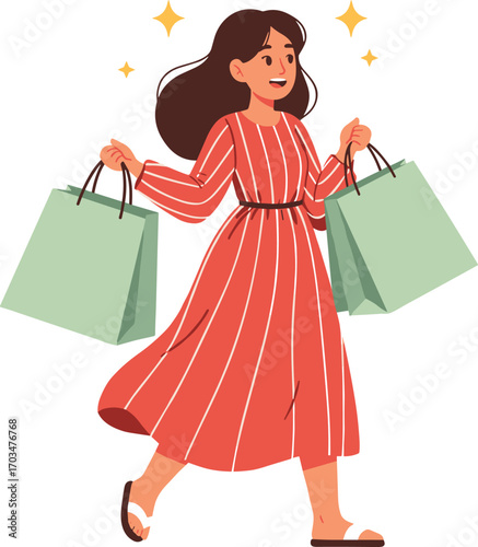 Muslimská žena chůze s nákupní vektorové ikony izolovaných na bílém pozadí.
