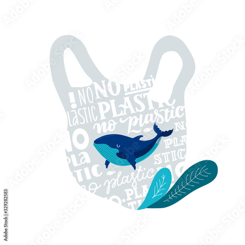 Koncept znečištění přírody plastem. Vektorové ilustrace ve stylu papírového umění. Plastový sáček s přírodní krajinou losů a jelenů divokých lesních zvířat. Problémy životního prostředí a ekologie. Zachraňte svět a zvířata
