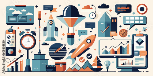 Neuronové sítě a umělá inteligence pomáhá lidem vytvářet články, analyzovat data, psát hudbu vektorové ilustrace. Podnikatelé používající AI na pracovní scéně
