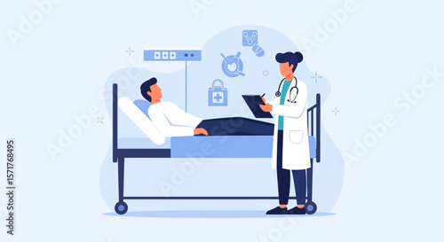 Vektorová ilustrace lékaře neurologa, který zkoumá svého pacienta s reflexním kladivem. Praktický designový prvek plochého stylu, ikona izolovaná na bílém pozadí.