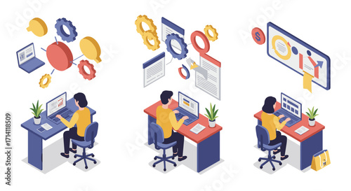 Nikdy nedojde úložiště, izometrická sada ikon, plochá vektorová izolovaná ilustrace. Získejte zdarma 10 GB dat.