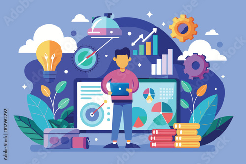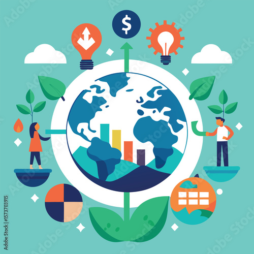 Nové technologie vektorové ploché ilustrace. Lidský mozek, symbol dna, laboratorní baňky pro genetiku chemický biologický výzkum, zeměkoule, počítač, robot, VR headset. Věda a technické inovace plakát.