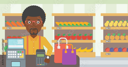 Nový rok a vánoční svátky příprava scéna set, plochý vektor izolované ilustrace. Lidé, kteří chodí po městské ulici s nákupními taškami, dárkovými krabicemi, vánočními stromky.