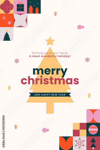 Šťastný Nový rok plakát s izometrické santa hlavy, kreativní vánoční strom a slavnostní zabalené dárkové krabičce, candy Cane zachází ilustrace. Zimní sezónní svátky oslava a přání design