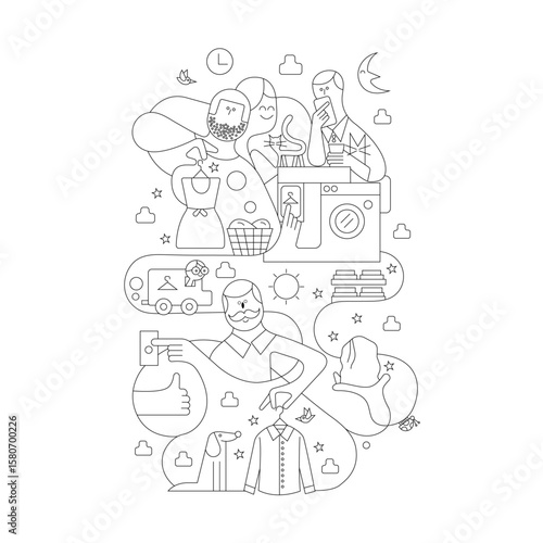 Novorozené dítě koncept vektorové ilustrace. Moderní tenká linie umění plochý styl designový prvek ve tvaru bradavky kojenecké láhve s předměty péče o dítě pro webové stránky bannery a tištěné materiály.
