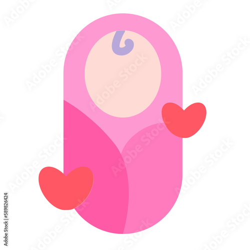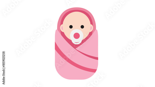 Novorozené dítě swaddle vektor. Kojenecká dívka zabalená v růžové dece karikatura ikona izolovaných na bílém pozadí. Dítě narozené, narozeniny, koncepce miminko