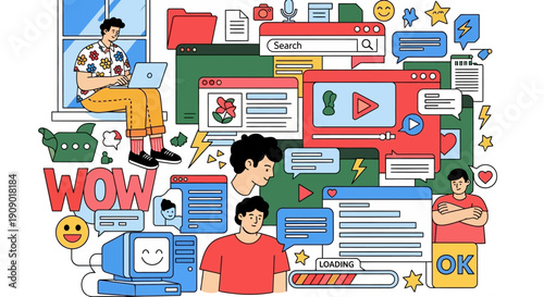 News media vektorové plakát banner šablony set. Lidé čtou tištěné noviny, online zprávy, sledují televizní zprávy. Tisk, vysílání a internet, hlavní typy masmédií. Plochý styl designu ilustrace.