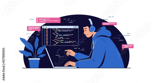 NFT umělec vytváření crypto art, digitální umělecká díla s obrovským štětcem na obrazovce počítače, vektorové ilustrace. Crypto Art market. Non-fungible token, technologie NFT. Ethereum blockchain.