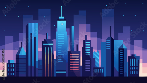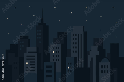 Noční město blackout, vektorové ilustrace. Panoráma města s hvězdnou oblohou, měsíc a mrakodrap budovy siluety bez elektřiny. Temné panorama města. Výpadek.