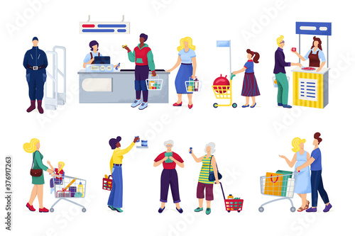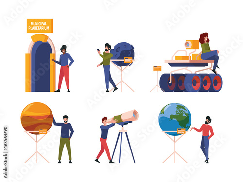 Noční klub dj dance disco party znaková sada, vektorové ploché ilustrace. Lidé tančí, baví se, dj hraje hudbu, Barman dělá alkoholické koktejly, ovládání obličeje. Diskotéka v nočním klubu.