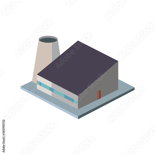 Izometrický vektor stanice jaderné elektrárny. Reaktor atomové energie generující továrnu a průmyslový odpad zařízení izolovaných na bílém pozadí