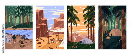 Oceanarium reklamní karty se šťastnými návštěvníky. Milující pár s datem, máma a dítě navštěvující Akvárium sledování podmořského světa s různými mořskými tvory vektorové ilustrace