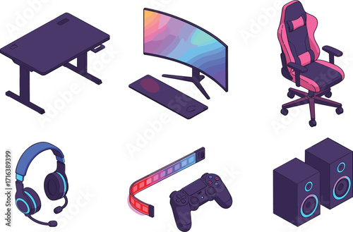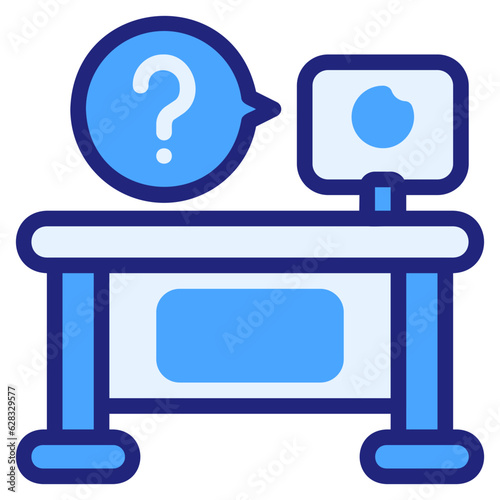 Kancelářské pracoviště s ikonou počítače. Vektorové stůl, křeslo pc desktop izolovaných na bílém pozadí