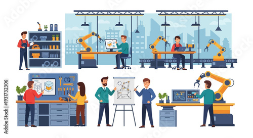 Vektorová sada plakátů, bannery s moderním interiérem pracovního prostoru, podnikatelé, kteří prezentují, jednají, podepisují smlouvy s partnery. Koncept kancelářského života, prvky designu plochého stylu.