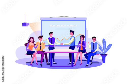 Scéna kancelářského života, vektorové ilustrace ve stylu papírového umění. Skupina podnikatelů siluety s workshop, setkání, plánování, prezentace. Týmová práce, kancelářské situace.