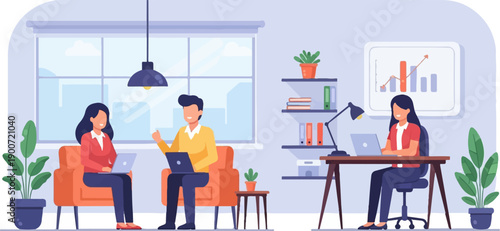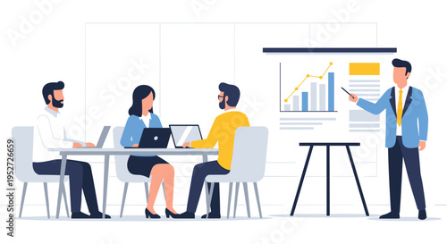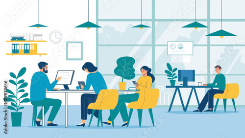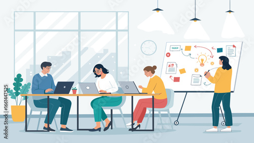 Podnikatelé plánování, diskutovat o problémech sedí u stolu v kanceláři, ploché vektorové ilustrace. Obchodní jednání, workshop, týmová práce, brainstorming, školení.