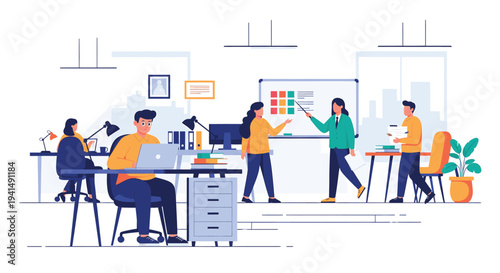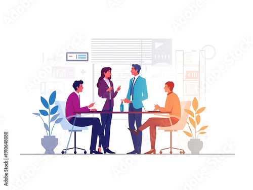 Podnikatelé plánování, diskutovat o problémech sedí u stolu v kanceláři, ploché vektorové ilustrace. Obchodní jednání, workshop, týmová práce, brainstorming, školení.