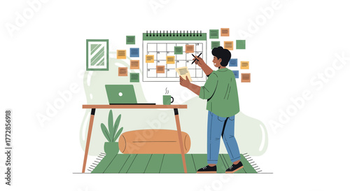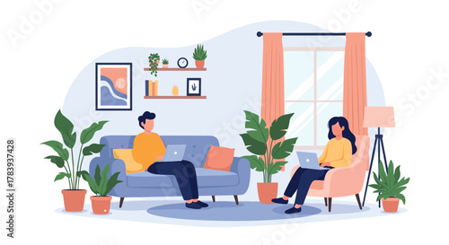 Kancelářský pracovní prostor lidé vektor scéna set. Podnikatelé na volné noze pohodlně doma na pracovišti ilustrace. Vzdálený pracovník, online komunikace a koncept na volné noze