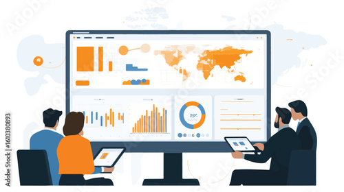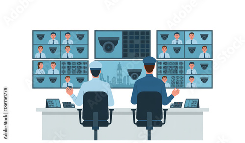 Kancelářské práce v bezpečnostní místnosti vektorové ikony izolovaných na bílém pozadí