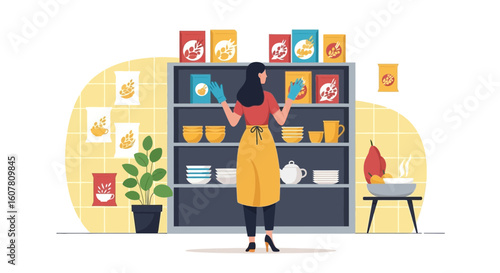 Moderní kancelářské pracoviště. Obchodní žena praktikující jógu a meditaci, ploché vektorové ilustrace. Klidná dívka sedící v lotosové pozici, relaxační. Všímavost, úleva od stresu. Kancelářská jóga.