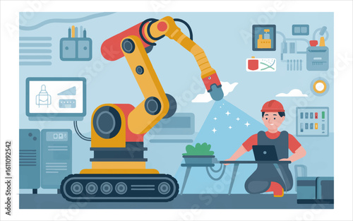Produkce ropy vektorové ploché ilustrace. Ruka s tryskou pro automatické tankování, barel, rafinerie, Cisterna, auto. Rafinace, přeprava a uvádění ropných produktů na trh. Koncept ropného průmyslu pro webový banner.
