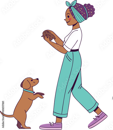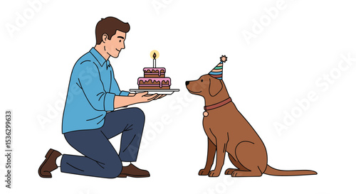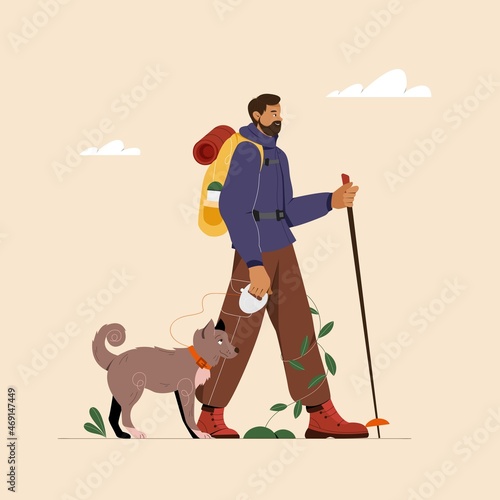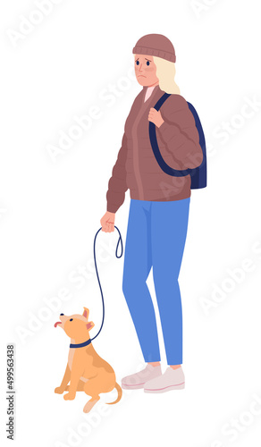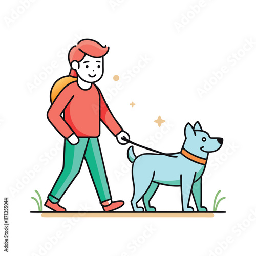 Starý muž nesoucí nákupní tašku venčení svého psa a pitné vody vektorové ikony izolované pozadí.