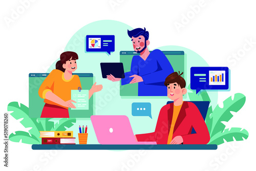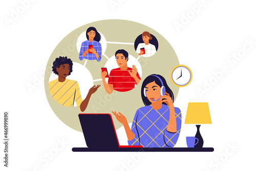 Online umělecké vzdělávání, tutor. Externí Grafik pracuje z domova. Video komunikace a studium koncepce ilustrace. Vektor web design šablony. Vstupní stránka webové stránky ilustrace.