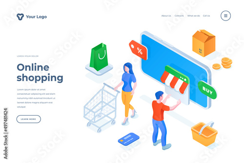 Online nabídka vektorové webové šablony, webové stránky a vstupní stránky design pro vývoj webových stránek a mobilních stránek. Izometrický smartphone s dražitelem na obrazovce a cenou nabídek kupujících.