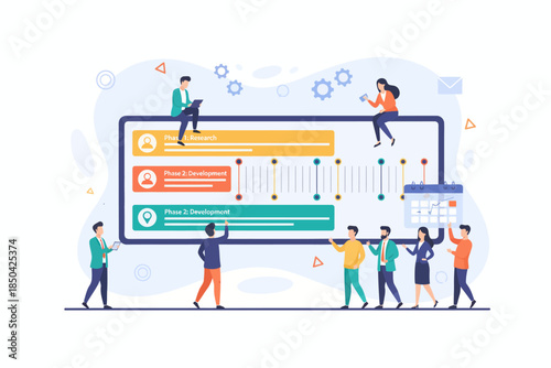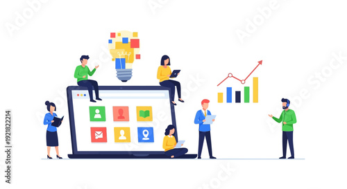 Obrovský počítačový monitor s hracími kartami na obrazovce, mužskými a ženskými postavami hrajícími internetovou blackjack hru z notebooku a mobilního telefonu. Online blackjack karban koncept pro webové stránky atd.