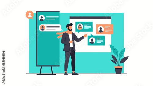 Podnikatelé podepisují online smlouvu pomocí stolního počítače mobilní telefon, potřásají si rukama, vektorové ploché ilustrace. Virtuální obchodní dohoda, úspěšné partnerství handshake, online komunikace