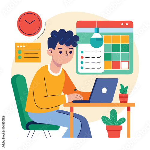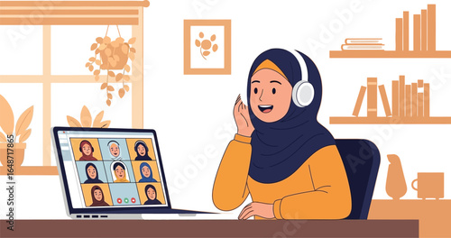 Online vaření masterclass, vektorové ploché ilustrace. Mladá žena kuchař připravuje jídlo v kuchyni před přenosným počítačem publikum. Online kulinářská škola, kurzy distančního vzdělávání v kuchařství.