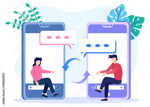 Vektorová ilustrace velkých tabletů a postav textových zpráv pomocí gadgetů. Online korespondence, chatování, rád přes sociální sítě, wifi připojení koncepty pro web banner webové stránky