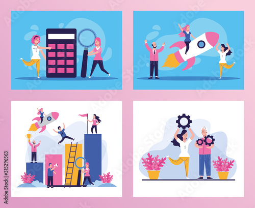 Online chodit s někým vektorový plochý izometrický plakát, banner set. Svobodné ženy a muži hledají lásku a romantiku při používání online seznamek k nalezení svých spřízněných duší.