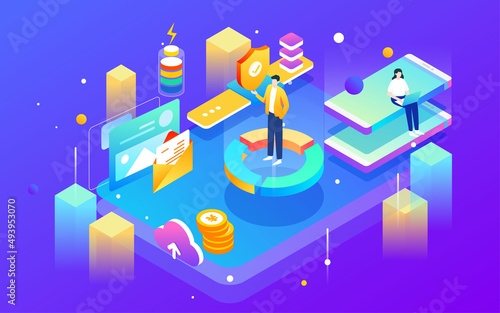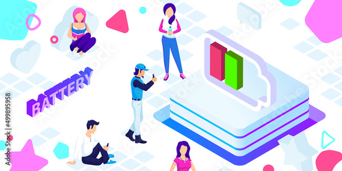 Online chodit s někým vektorový plochý izometrický plakát, banner set. Lidé se setkávají, chodit s někým, chatování a vytváření vztahů přes internet.