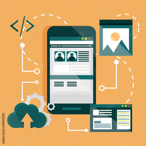 Tiny people, loader delivery man nakládání lepenkových krabic do smartphonu a žena přijímač dostat balíček z něj, ploché vektorové ilustrace. Online doručovací služba.