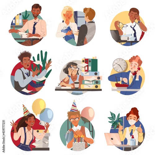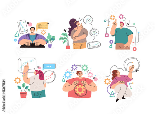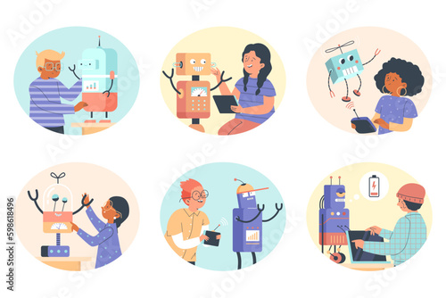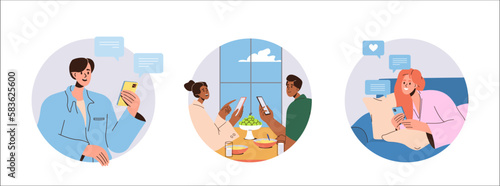 Online lékař pacient komunikace set, vektorové ploché izolované ilustrace. Lékař z laptop computer consulting muž, žena, rodina. Online lékařská konzultace, virtuální návštěva lékaře, živý chat.