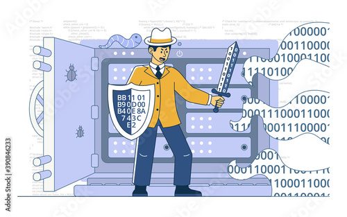 Online tabulka očních testů. Muž testování vize z domova sedí v přední části přenosného počítače, ploché vektorové ilustrace. Online kontrola zraku a zraku.