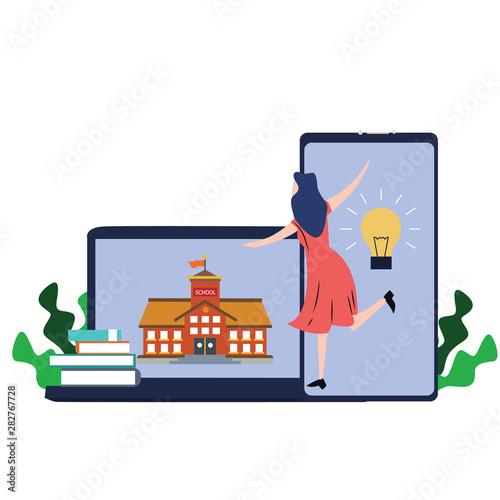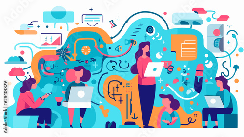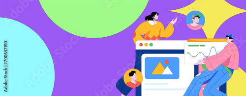 Online fake news koncept ploché vektorové ilustrace. Malí lidé a obrovský přenosný počítač s popraskanou planetou zeměkoule, novinář s mikrofonem na obrazovce. On-line zpravodajství, dezinformace, propaganda.