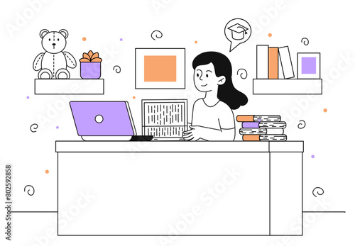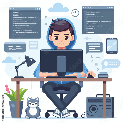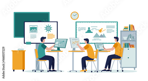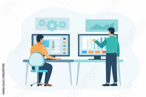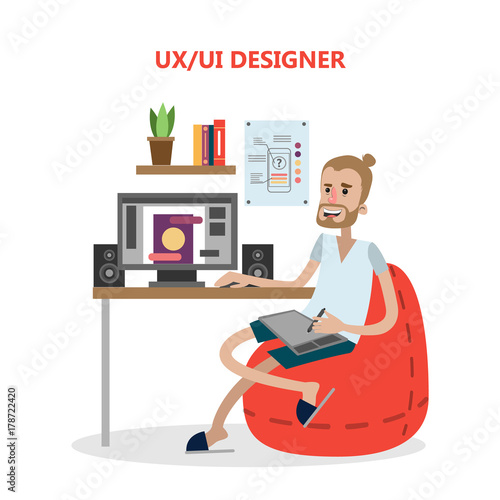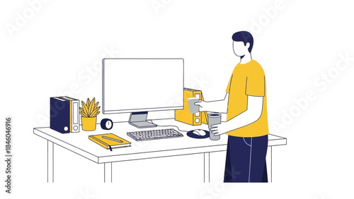 Online rezervace letů vektorové ilustrace. Muž pomocí počítače a přes internet provést rezervaci jízdenky. Letištní lidé plochý designový prvek, ikona izolovaná na bílém pozadí.