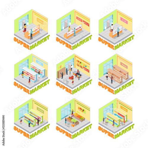 Online květinářství v izometrickém stylu designu. Nakupujte květiny na internetu pomocí mobilního smartphonu s rychlým doručením a platbami kreditní kartou. Izometrické 3D izolované ikony.