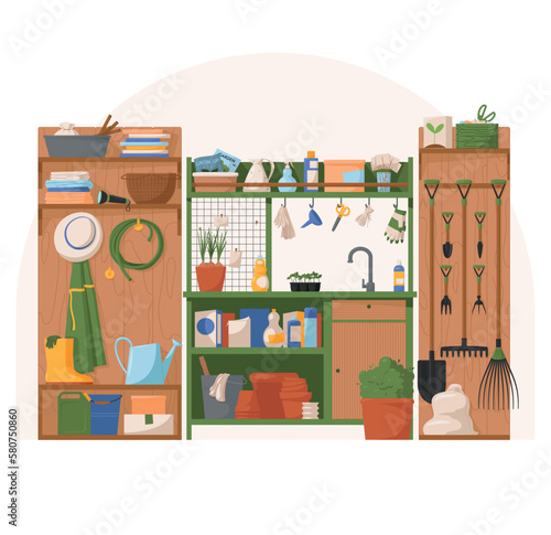 Internetový obchod s potravinami. Obří smartphone, papírová taška s potravinářskými výrobky a drobné postavy s nákupním vozíkem, kreditní karta, plochá vektorová ilustrace. On-line obchod s potravinami objednat doručovací služba.