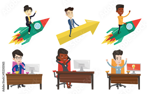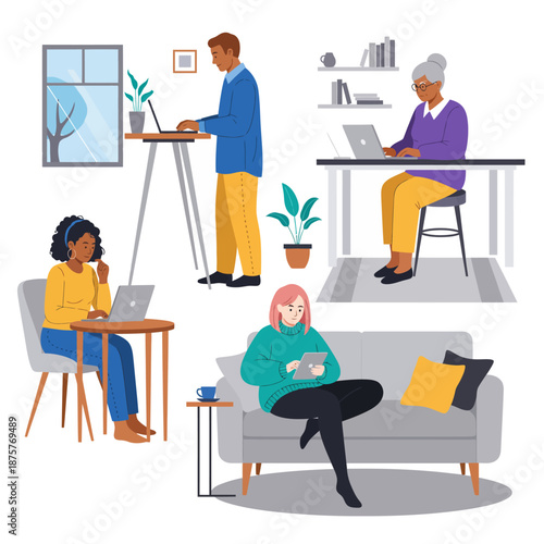 Online pracovní pohovor znaková sada, vektorové ploché izolované ilustrace. Hr manažeři pohovory uchazečů o zaměstnání. Lidské zdroje, nábor, zaměstnanost, video pohovory, moderní komunikační technologie