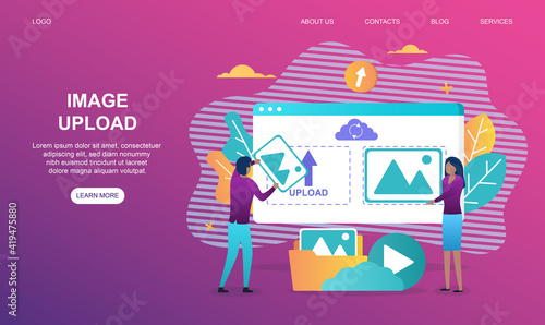 Vektorové ilustrace malých podnikatelů, kteří sledují video přednášku na velkém počítači. Online vzdělávání, firemní školení, webinář, konference, koncept e-learningu pro webový banner, webovou stránku atd.
