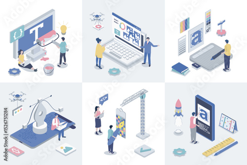Online služby tisku zboží, vektorové izometrické ilustrace. Vlastní koncept tisku trička pro webový banner, webovou stránku atd.