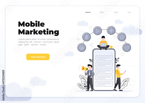 Drobné postavy čtou a sledují nejnovější zprávy na smartphonu, přenosném počítači, vektorové ploché ilustraci. Sociální média a online zpravodajská média.
