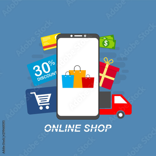 Online prodej sleva propagace vektorové 3D ilustrace. Internetový obchod obchod nabízející dárek a bonus za nákup. Virtuální aplikace na smartphonu. Komerční marketingová kampaň