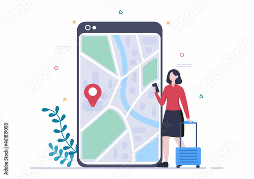 Vektorová ilustrace velkého mobilního telefonu a malých lidí nakupujících módní zboží v internetovém obchodě. Mobilní obchodní aplikace pro online tašky, obchody s obuví, koncept online nakupování pro webový banner, webovou stránku.